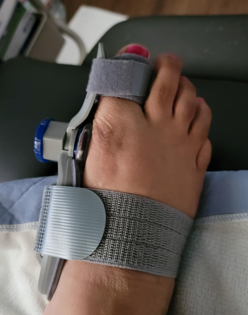 After looking at many bunion correctors and reading many reviews I decided on this one. It had great reviews and seemed easy to use. I only have a small bunion on my left foot but wanted to get ahead of a bigger problem and no surgery! I wear heels 5 days a week and want to continue doing so. Im obsessed with heels! This product is working so well! I use it at night while watching TV for about an hour. It is adjustable and comfortable and is working! The angle is returning to normal and I will keep using it daily so the bunion doesn't return.