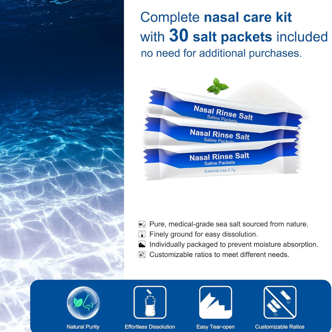 Nervous about the "sting"? We get it. That burning sensation only happens with the wrong salt-to-water ratio. Our pre-measured packets make it impossible to get wrong. Just add lukewarm water (Tip #2 is key!), press the valve, and breathe through your mouth (Tip #4). No choking, no stinging. Just fast, soothing relief