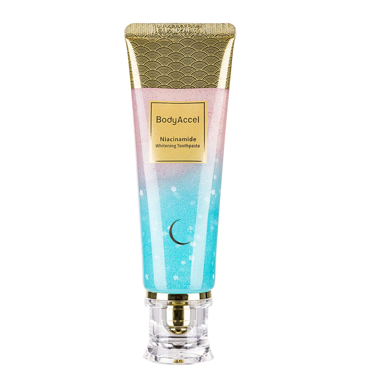 Elevate your oral care routine. Powered by skin-savvy Niacinamide, our advanced formula offers a complete smile transformation. It deeply polishes away years of stains to reveal a brilliant new whiteness, while its gentle composition soothes gums and prevents sensitivity. Enjoy lasting fresh breath and the confidence of a comprehensively healthy, dazzling smile.